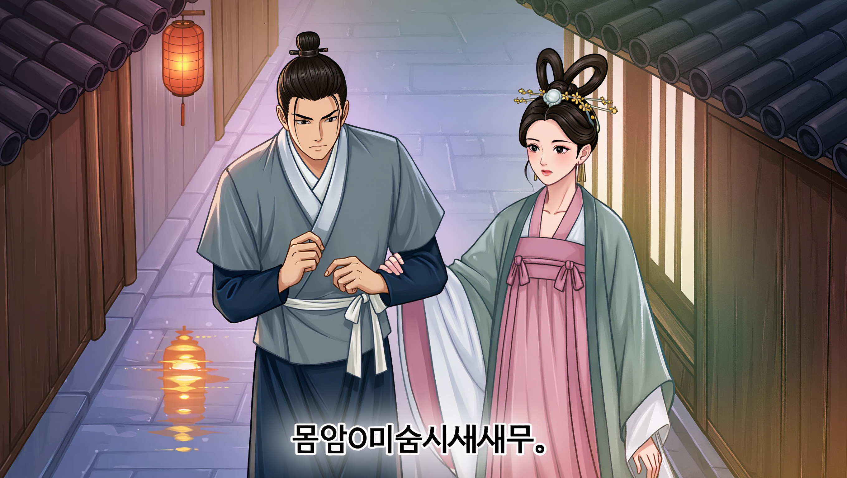 만복이가 내 곁에 바짝 붙어 작은 소리로 속삭였다. "대단하십니다, 아씨." 그의 눈이 놀라움과 또 다른 무언가로 빛나고 있었다. 나는 애써 무심하게 대답했다.