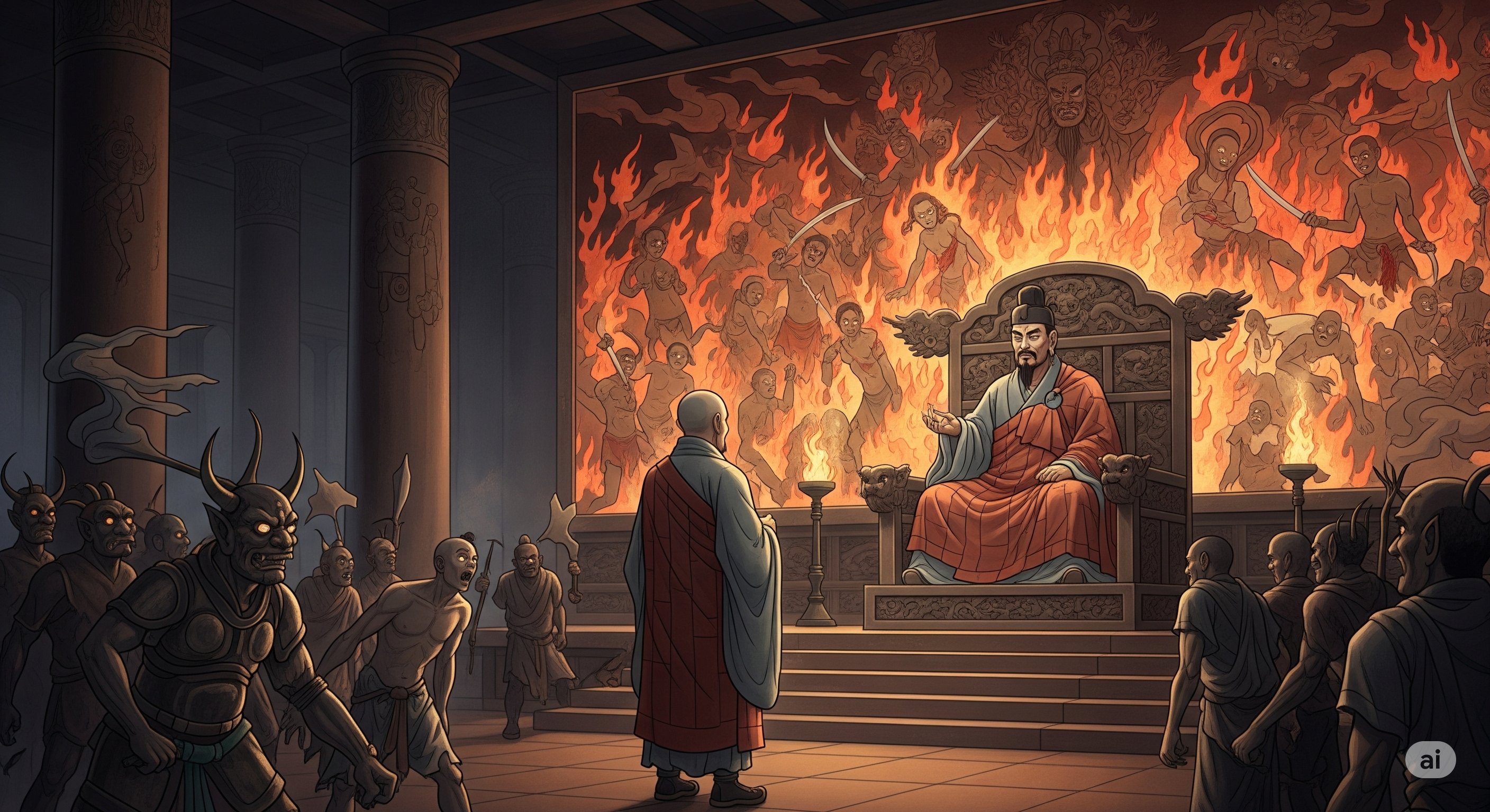 저승사자의 설명을 들으며 스님은 섬뜩함을 느꼈습니다. 부처님의 가르침에서 들었던 지옥이 실제로 존재하는 것이었습니다. 그리고 생각보다 훨씬 더 무시무시했습니다.