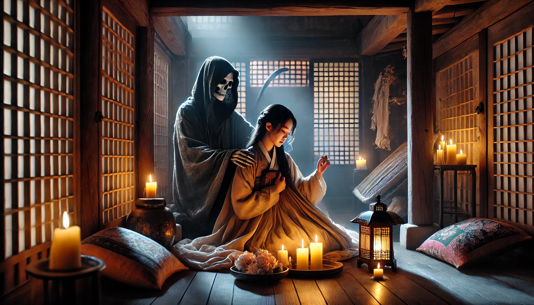 그날 밤, 연이는 홀로 마루에 앉아 달을 바라보았다. 구와의 약속이 머릿속을 맴돌았다. 저승길 안내자가 된다는 것은 무엇을 의미하는 걸까? 더 이상 인간으로 살 수 없게 되는 걸까? 불안한 마음에 잠을 이룰 수 없었다.