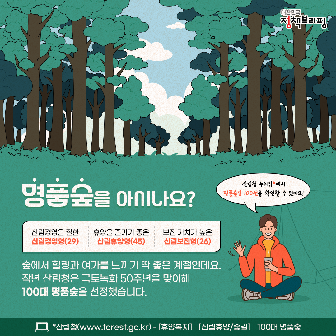 *산림청 - [휴양복지] – [산림휴양/숲길] – 100대 명품숲