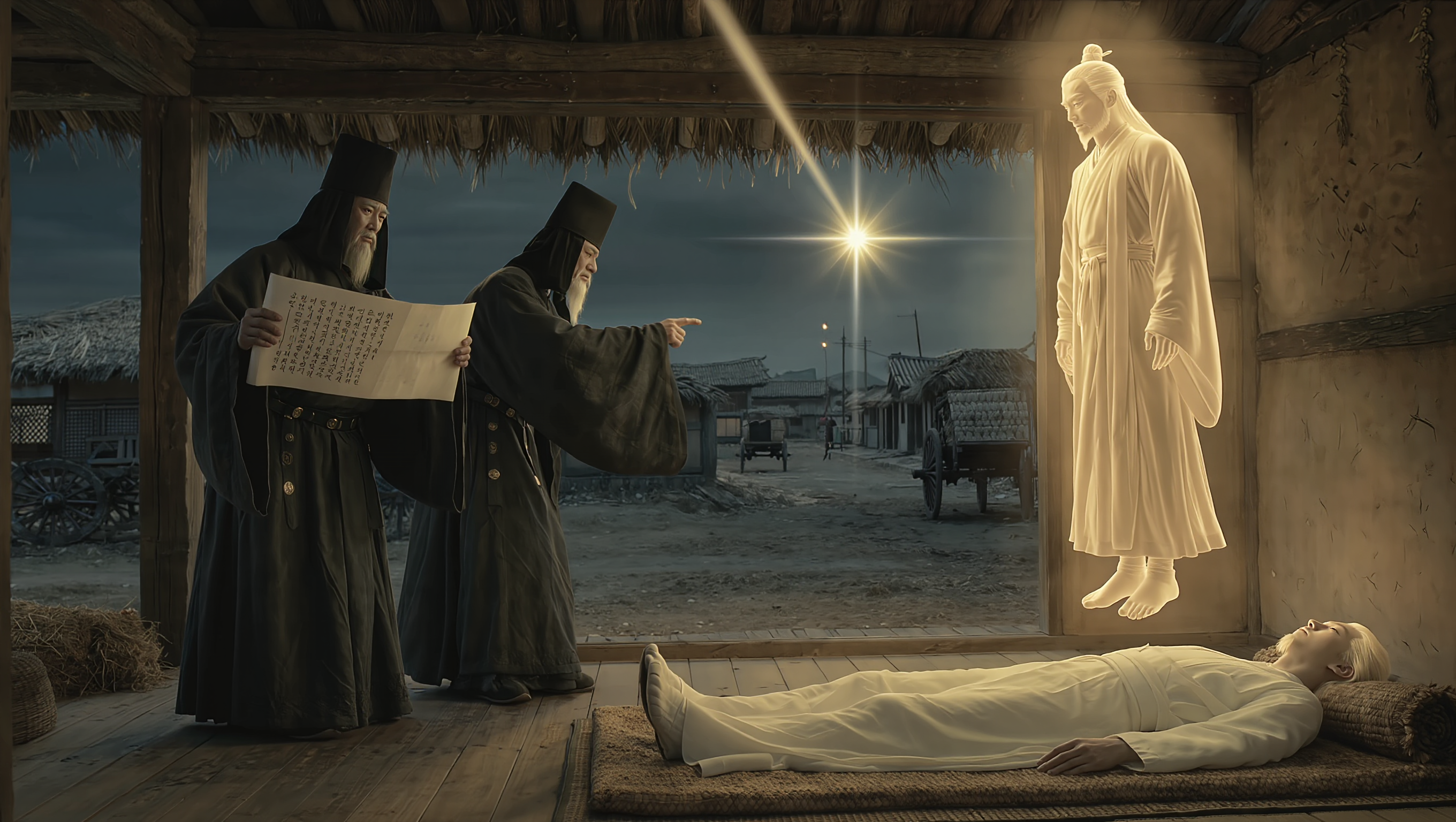 저승사자 둘은 한참을 머뭇거렸습니다. 명부에 없는 사람의 영혼을 함부로 거둘 수는 없었습니다. 저승에도 법도가 있는 것이었습니다. 명부에 이름이 적힌 사람만 데려갈 수 있고, 명부에 없는 사람을 데려갔다가는 저승 관리들에게 큰 벌을 받게 됩니다. 잘못 데려간 영혼 때문에 저승이 뒤집힌 전례가 한두 번이 아니었기 때문입니다.