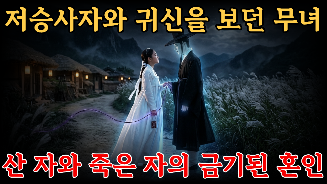 #조선야담, #저승사자, #무녀, #금기된혼인, #귀신이야기, #산자와죽은자, #저승전설, #조선귀신, #무당이야기, #명혼, #저승사자의신부, #오싹한이야기, #한국전설, #밤에듣는이야기, #조선괴담