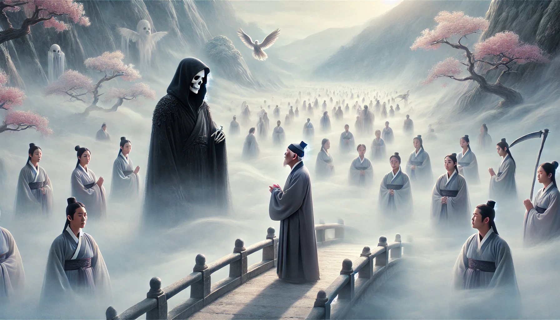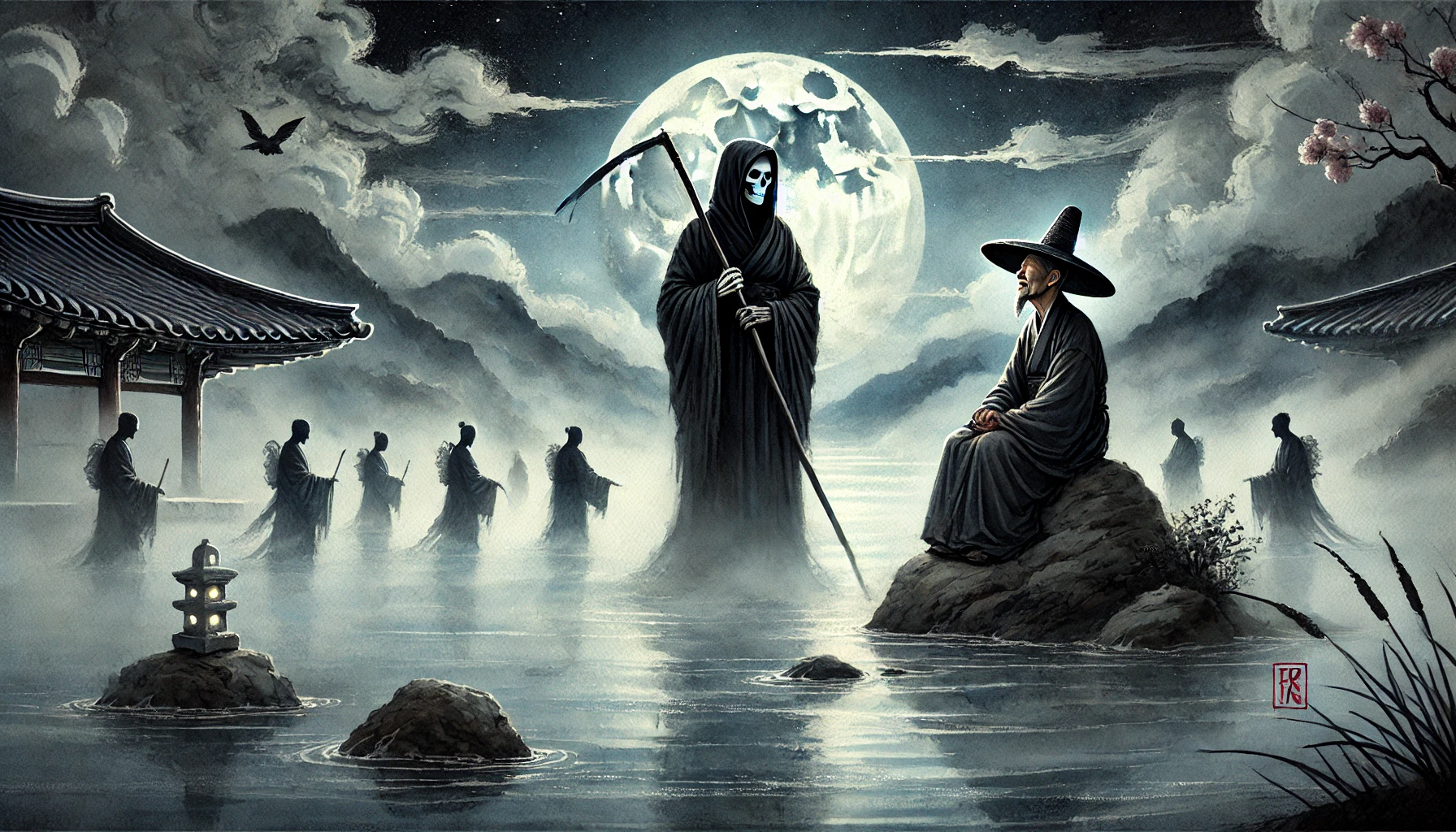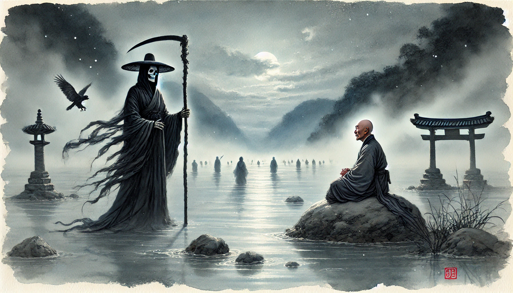 "수천 년간, 영혼을 거두어 온 냉혹한 저승사자. 그는 자신이 '법' 그 자체라 믿었습니다. 하지만, 삼도천(三途川) 앞에서 마주한 한 고승(高僧)이, 그를 향해 나직이 속삭였습니다. '사자여, 이 강을 건너는 저 영혼들이 보이는가. 저 길이, 바로 네가 갈 길이다.' 저승사자마저 깨닫게 한 노스님의 마지막 지혜는 무엇이었을까요?"