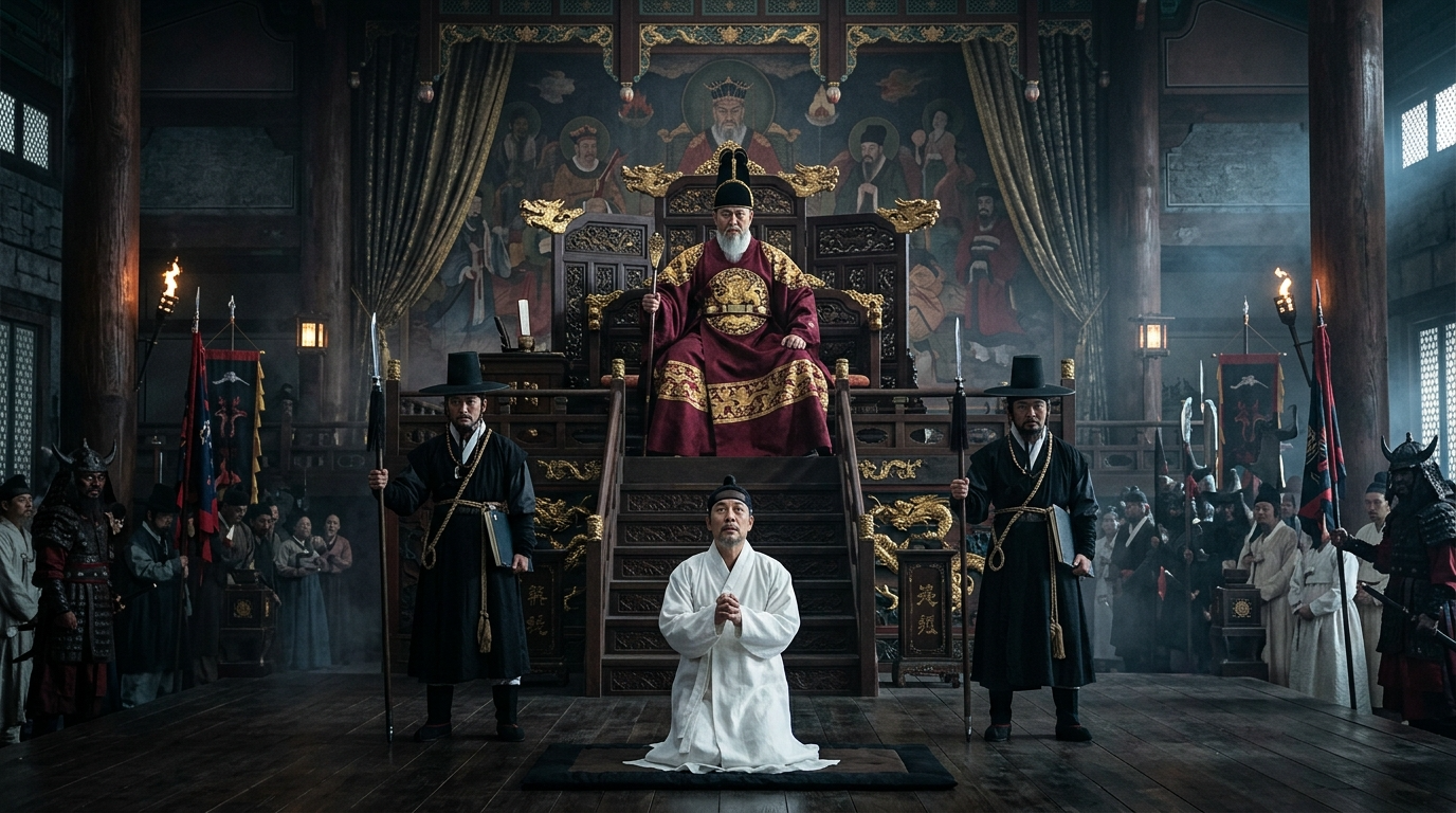전각 정면 높은 단상 위에 염라대왕이 앉아 있었습니다. 박진사가 상상했던 무서운 얼굴이 아니었습니다. 수염이 길고 눈빛이 깊은, 위엄은 있으되 잔인해 보이지는 않는 모습이었습니다. 다만 오늘따라 염라대왕의 이마에는 깊은 주름이 잡혀 있었고, 표정이 심히 곤란해 보였습니다.
