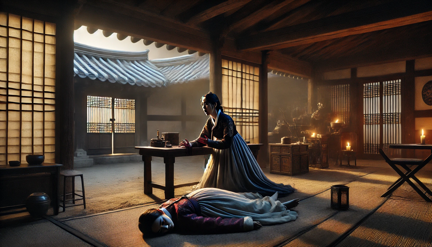 박씨의 얼굴에는 묘한 미소가 스쳤습니다. 6개월 동안 계획해온 일이 드디어 실행되는 순간이었으니까요. 시장에서 몰래 구해온 독초를 우려낸 이 약은 서서히 내장을 태우며 고통스럽게 죽음에 이르게 하는 것이었습니다.