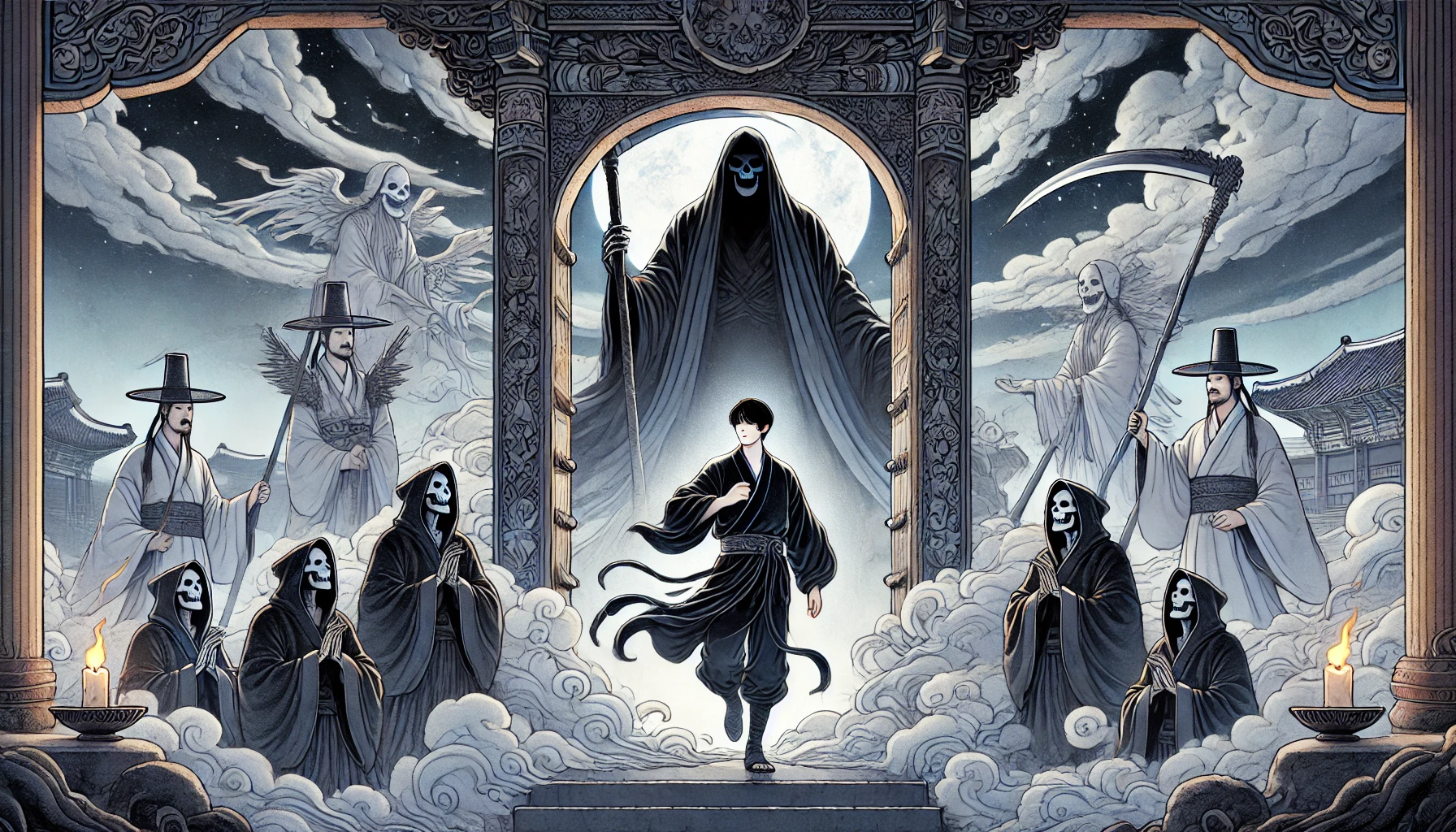 귀문관이 물었지만, 그 사내는 대답하지 않았습니다. 다만 빙긋 웃으며 저승 안쪽으로 걸어갔습니다.