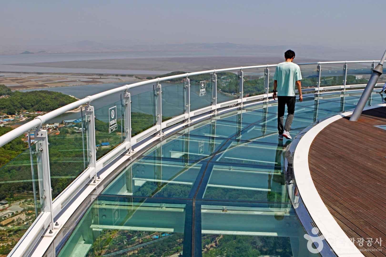 화개정원은 교동도 화개산 기슭에 조성한 정원이다. 민통선 안쪽 교동도를 체감할 수 있는 여행지이기도 하다. 그래서 6·25 전쟁이 있었던 유월에 한층 의미 있다. 정상부 화개산전망대 스카이워크는 북한의 연백평야가 한눈에 들어온다. 바다 건너 끝이 북한 땅이라 뭉클하다. 그럼에도 남과 북의 바다는 철책이 없어 한데 어울려 흐른다는 사실이 위로가 된다.