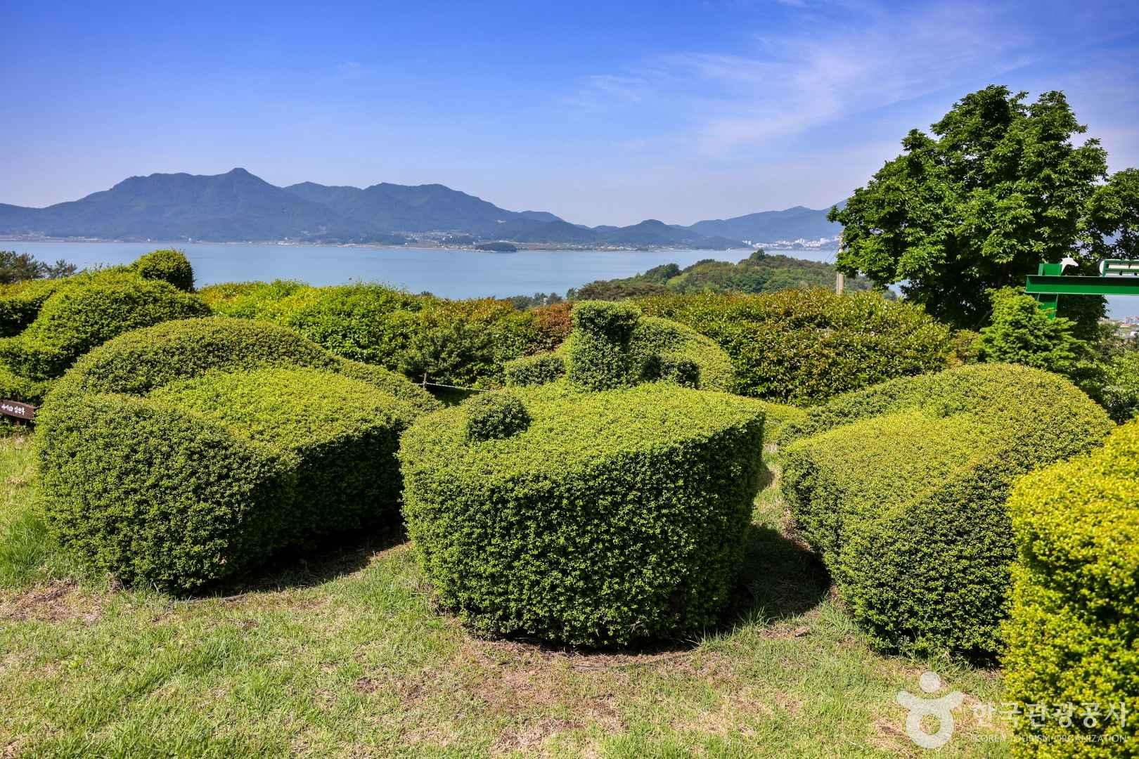 영화 ‘가위손’하면 떠오르는 장면이 있다. 주인공인 조니 뎁이 가위손으로 거침없이 나무를 깎아서 공룡 모양으로 만드는 장면이다. 나무를 다듬어 다양한 모양의 작품을 만드는 것을 토피어리라고 한다. 남해 명소로 떠오른 토피아랜드는 우리나라 최초의 토피어리 정원이다.