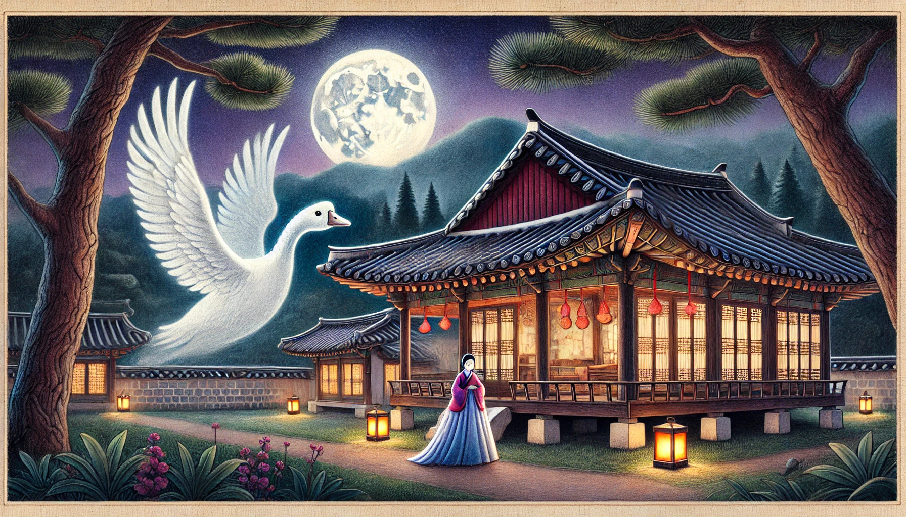 인간과 새의 경계를 넘어선 금단의 사랑. 아름다운 여인은 왜 스스로 기러기가 되었나? 밤마다 옛 연인의 처소를 맴도는 한 마리 기러기… 인간으로 돌아갈 수 없는 운명 속에서, 그녀는 어떻게 다시 사랑을 이루었을까? 슬픔과 희망이 뒤섞인 초월적인 사랑 이야기 속으로 여러분을 초대합니다.