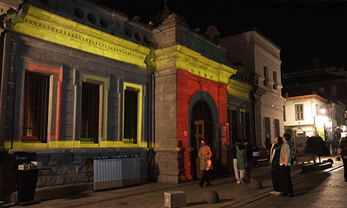 건물에 고보로 매핑하여 건축물이 가진 특징과 구조를 다채로운 색상과 함께 연출