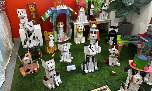페이퍼 가구와 헌 옷, 병뚜껑 등 재활용품을 활용한 미술 작품 전시로 친환경 에코스테이션 연출
