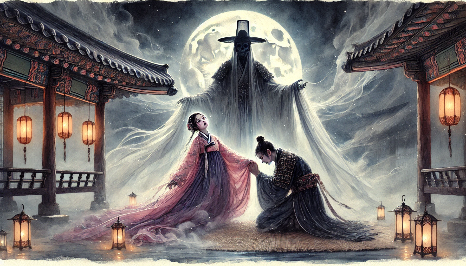 사자가 한 걸음 다가오자 방 안의 온도가 급격히 떨어져 입김이 나올 정도였습니다. 촛불이 파르르 떨며 꺼질 듯 말 듯 위태로웠습니다. 그것은 압도적인 공포였습니다. 하지만 사랑은 공포보다 강하다고 했던가요. 월향은 두려움에 치를 떨면서도, 결코 물러서지 않는 암사자처럼 눈을 부릅뜨고 저승사자를 노려보았습니다.