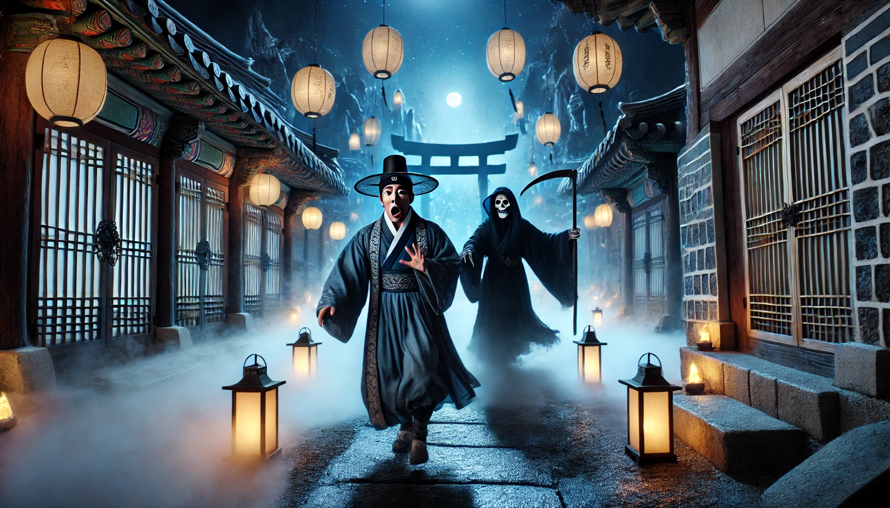 때는 바야흐로 조선 중기, 충청도 어느 자락에 자리한 작은 초가마을. 저녁 연기가 모락모락 피어오르고, 아이들의 해맑은 웃음소리가 흙담을 넘나드는 평화로운 시간이었습니다. 이 마을에는 유난히 성실하고 마음씨 곱기로 소문난 사내, 김서방이 살고 있었지요. 그날도 김서방은 밭에서 고된 일을 마치고 집으로 돌아오는 길이었습니다. 그의 손에는 아이들에게 줄 요량으로 깎은 예쁜 나무 토끼 한 마리가 들려 있었고, 등에는 땀이 흥건했지만 입가에는 고된 삶 속에서도 가족을 생각하는 흐뭇한 미소가 걸려 있었죠. 흙먼지 풀풀 나는 길을 걸어 집에 다다르니, 아내가 끓이는 구수한 된장찌개 냄새가 그의 코를 간질였습니다. "애비, 오셨소." 마당으로 마중 나온 아내의 얼굴에는 반가움이 가득했고, 툇마루에 앉아 있던 어린 아들과 딸은 제 아비를 보자마자 버선발로 뛰어나와 와락 안겼습니다. "아버지! 제 토끼는요?" "아버지, 오늘 장에 다녀오셨어요?" 아이들의 재잘거림은 김서방에게 그 어떤 음악보다도 달콤한 휴식이었습니다. 그는 땀을 닦으며 아이들 머리를 쓰다듬고, 아내가 차려준 소박하지만 정성 가득한 저녁상에 둘러앉았습니다. 보리밥 한 그릇에 된장찌개, 그리고 풋고추 몇 개가 전부인 단출한 밥상이었지만, 네 식구의 웃음소리가 더해지니 세상 그 어떤 진수성찬도 부럽지 않았습니다. 김서방은 고된 하루의 피로가 눈 녹듯 사라지는 것을 느끼며 생각했습니다. '이만하면 족한 인생이다. 비록 몸은 고될지언정, 아리따운 아내와 토끼 같은 자식들이 곁에 있으니 이보다 더한 행복이 어디 있을까.' 바로 그때였습니다. 온 집안을 따스하게 감싸던 공기가 순식간에 싸늘하게 변했습니다. 방금 전까지 시끄럽게 울어대던 바깥의 귀뚜라미 소리가 거짓말처럼 뚝 그치고, 마당을 지키던 누렁이마저 낑낑거리며 꼬리를 감추는 소리가 들렸습니다. 이상한 정적이 흐르는 순간, 삐걱거리는 소리와 함께 사립문이 저절로 스르르 열렸습니다. 김서방과 그의 아내는 불안한 눈빛으로 서로를 쳐다보았고, 아이들은 겁을 먹고 제 어미의 치맛자락 뒤로 숨었습니다. 그리고 마당으로 들어선 것은, 사람이되 사람이라 할 수 없는 기이한 존재였습니다. 머리에는 검은 갓을 쓰고, 온몸에는 빛 한 점 통과시키지 못할 것처럼 칠흑같이 검은 도포를 두른 사내. 창백하다 못해 푸른빛이 도는 얼굴에는 그 어떤 감정도 담겨 있지 않았고, 깊이를 알 수 없는 눈은 오직 방안의 김서방만을 향하고 있었습니다. 세상의 모든 소리를 빨아들이는 듯한 침묵 속에서, 그 사내가 마침내 입을 열었습니다. 그의 목소리는 마치 한겨울 칼바람처럼 차갑고 날카로웠습니다. "충주 땅에 사는 김 아무개, 네 명이 오늘로 다하였으니, 나를 따라 길을 나서야겠다." 저승사자. 이야기로만 듣던 그 존재가 자신의 눈앞에 서 있다는 사실을 깨닫는 순간, 김서방의 머릿속은 하얗게 비어버렸습니다. 숟가락을 든 채 굳어버린 그의 귓가에 아내의 비명이 날카롭게 파고들었습니다. "서, 서방! 이게 무슨 말이오! 여보!" "아, 아버지… 무서워요…" 아이들의 울음소리가 터져 나왔지만, 저승사자의 눈빛에는 한 치의 흔들림도 없었습니다. 김서방은 정신을 차리고 다급하게 외쳤습니다. "아니, 아니오! 뭔가 잘못됐을 것이오! 나는 아직 젊고, 병든 곳 하나 없는데 어찌 내 명이 다했다는 말이오! 내게는 아내와 어린 자식들이 있소, 제발… 제발 한 번만 살펴주시오!" 그가 애원하며 매달렸지만, 저승사자는 고개를 저으며 말했습니다. "어명(御命)이 아닌 명부(冥府)의 부름이다. 이름과 생년월일, 시간이 정확하니 길을 서둘러야 한다." 말이 끝나기가 무섭게, 보이지 않는 거대한 힘이 김서방의 몸을 일으켜 세웠습니다. 그의 발은 땅에 닿아있지 않은 듯 허공에 뜬 채 문밖으로 끌려 나가기 시작했습니다. "안 돼요! 여보! 제발 우리 서방을 데려가지 마시오!" "아버지! 가지 마세요, 아버지!" 아내와 아이들의 절규가 등 뒤에서 심장을 찢는 듯 들려왔지만, 그의 몸은 자신의 의지와는 상관없이 차가운 밤공기 속으로 빨려 들어갔습니다. 마지막으로 그의 눈에 들어온 것은, 흙바닥에 주저앉아 통곡하는 아내와 두 아이의 모습, 그리고 마루에 나뒹구는 자신의 밥그릇이었습니다. 그렇게, 평범하고도 행복했던 김서방의 하루는 예고 없이 찾아온 죽음의 그림자에 의해 산산조각 나고 말았습니다.