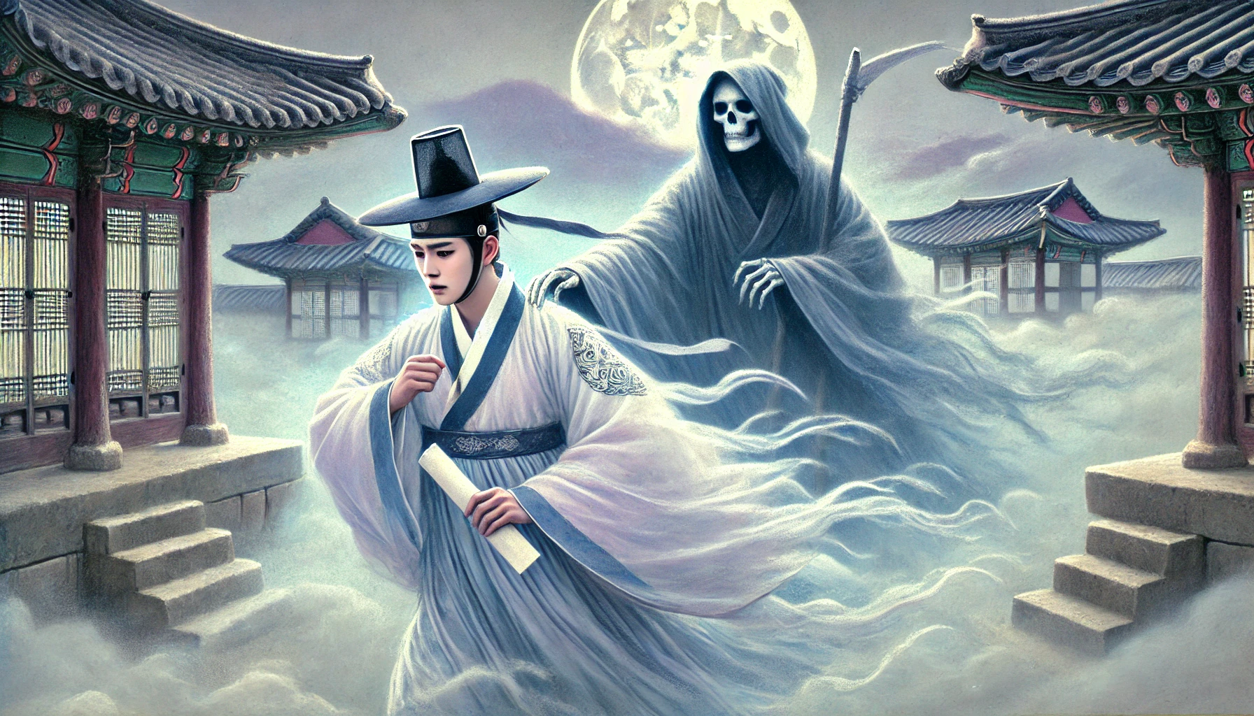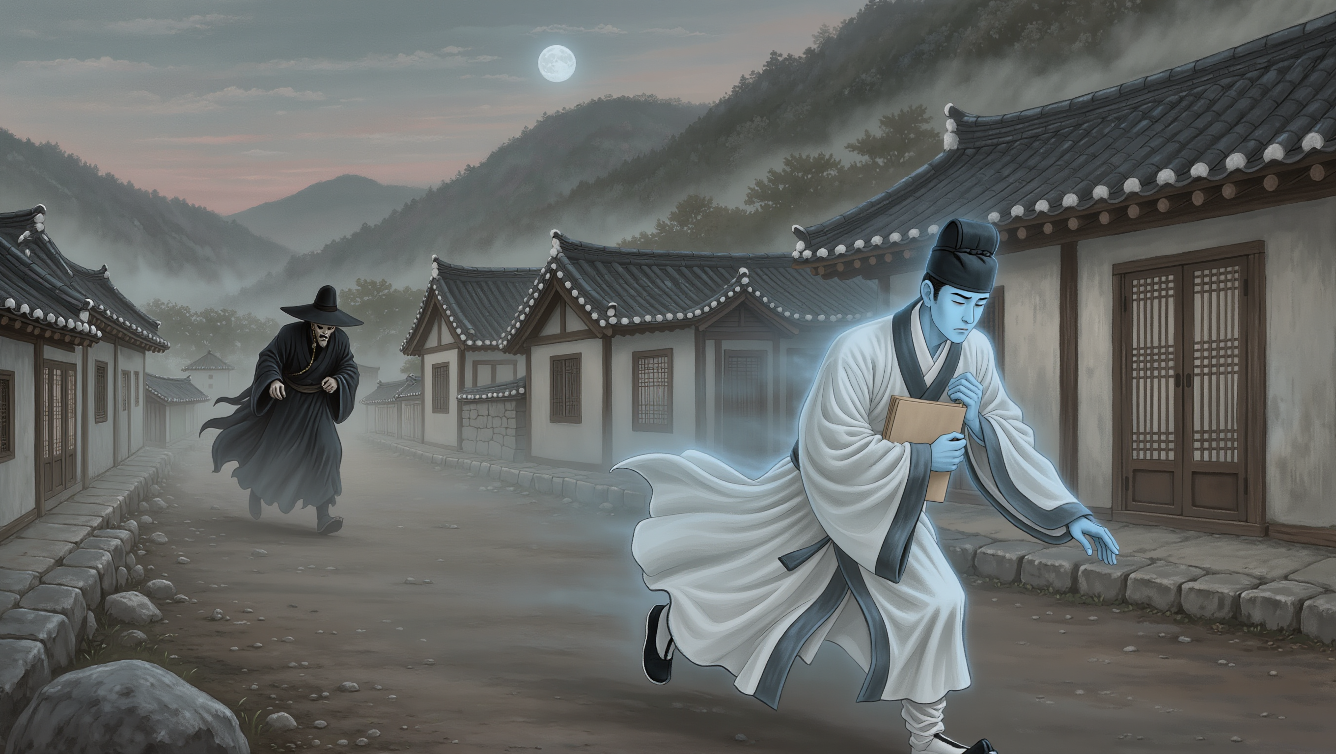 다음 날 아침, 이서방은 연장 꾸러미를 지고 이른 새벽길을 나섰습니다. 옥분은 "조심히 다녀오라"며 주먹밥 하나를 쥐여 주었지만, 남편의 지게 속에 아버지의 연장이 들어있는 줄은 꿈에도 몰랐습니다. 장터는 시끌벅적했습니다. 이서방은 푸줏간에서 흘러나오는 고기 굽는 냄새도, 색 고운 비단 가게에서 외치는 호객꾼의 소리도 애써 외면한 채, 오직 대장간으로 향했습니다. "이거 얼마나 쳐줄 수 있겠소?" 늙은 대장장이는 연장을 보더니 혀를 찼습니다. "허 이거 물건일세. 강철이 제대로 올랐어 이 정도 연장이면 요즘 보기 드문데 이걸 왜 파시오? 이거 하나면 평생을 먹고 살 기술인데" "됐고 돈이나 주시오 급히 쓸 데가 있소." 이서방은 연장을 넘기고 엽전 두 냥을 손에 쥐었습니다. 쌀 서 말을 살 수 있는 큰 돈이었습니다. 그는 평생 만져본 적 없는 묵직한 돈 꾸러미를 품에 안고도 쌀가게가 아닌, 곧장 장신구 가게로 달려갔습니다. "비녀 비녀 하나 주시오. 가장 곱고 튼튼한 은비녀로 주시오." 가게 주인이 이서방의 행색을 보고 무시하려다, 그가 내민 엽전 꾸러미를 보고 화색이 돌아 몇 개를 보여주었습니다. 옥비녀도 있었고 자개 비녀도 있었지만, 이서방의 눈에는 오직 하나만 보였습니다. "이 이것으로 하겠소." 그는 한참을 고르고 골라, 작고 소담한 매화 송이가 아주 섬세하게 새겨진 은비녀 하나를 샀습니다. 화려하진 않지만 옥분이의 수수한 얼굴과 꼭 어울릴 것 같았습니다. 엽전을 다 쓰고 나니 주먹밥 하나 살 돈도 남지 않았지만, 마음만은 천하를 얻은 듯 부유했습니다. '옥분이가 이걸 보면 얼마나 좋아할까 그 나무 비녀 대신 이걸 꽂으면 얼마나 고울까' 그는 비녀를 붉은 비단 주머니에 넣어 품 속에 소중히 감추고, 서둘러 집으로 향하는 산길에 올랐습니다. 해가 뉘엿뉘엿 지고 있었습니다. 마음이 급해진 이서방은 좁은 산길을 성큼성큼 걸어 올라갔습니다. 그런데 그날따라 산바람이 몹시 차가웠습니다. 갑자기 하늘이 먹물처럼 어두워지더니 찬 바람과 함께 후드득 비가 쏟아지기 시작했습니다. "아이고 이런 산신령님이 노하셨나" 이서방은 품 속의 비녀가 젖을까 싶어 옷깃을 더욱 여몄습니다. 빗줄기는 금세 장대비로 변했습니다. 천둥이 치고 번개가 내리쳤습니다. 산길은 순식간에 흙탕물로 변해 미끄럽기 짝이 없었습니다. 그가 마지막 고개를 넘으려던 찰나. '아차!' 빗물에 불어난 바위 틈을 뛰어넘다가 그만 발을 헛디디고 말았습니다. "으 억!" 그의 몸이 비탈길 아래로 굴러떨어졌습니다. '쿵!' 하는 끔찍한 소리와 함께, 그의 머리가 날카로운 바위에 부딪혔습니다. "옥 분 아 비 비녀" 이서방의 눈앞이 캄캄해졌습니다. 그리고 모든 것이 고요해졌습니다. 얼마나 시간이 흘렀을까 이서방은 누군가 자신을 부르는 듯한 차가운 소리에 눈을 떴습니다. "이서방 이서방 일어날 시간이다." 몸은 깃털처럼 가벼웠습니다. 머리의 통증도 사라졌습니다. '내가 살았나?' 그가 몸을 일으키자, 비에 젖은 자신의 육신이 바위 틈에 끔찍한 모습으로 쓰러져 있는 것이 보였습니다. "이 이게 어찌 된" 바로 그때, 그의 앞에 칠흑 같은 어둠을 뚫고 한 사내가 나타났습니다. 하얀 창호지처럼 낯빛이 희고, 검은 도포에 갓을 쓴 사내 '월직(月直)' 저승사자였습니다. 월직은 손에 든 명부(名簿)를 펼쳐보았습니다. "이서방 향년 마흔 아홉. 명(命)이 다하였으니 가자." "무 무슨 소리요 나는 가야 하오! 아내가 옥분이가 기다린단 말이오!" "시끄럽다. 법도대로 따르라." 월직이 이서방의 영혼을 향해 쇠사슬을 내밀었습니다. 그런데 이상한 일이 벌어졌습니다. 이서방의 영혼이 '스르르' 흐려지며 월직의 시야에서 사라진 것입니다. "! 어 어디 갔느냐!" 월직은 당황했습니다. 명부에는 분명 이곳에서 명을 거두라 되어 있는데, 영혼이 보이질 않았습니다. "이 이럴 수가 명부에 없는 일이다!" 이서방 역시 놀랐습니다. 저승사자가 자신을 보지 못하는 것입니다. 그가 자신의 손을 내려다보자, 그의 손에는 은비녀 하나가 이승의 것이 아닌 영롱한 빛을 내며 쥐어져 있었습니다. 그것은 이승에 떨어진 비녀가 아니라, 그의 간절한 '미련(未練)'이 만들어낸 영혼의 비녀였습니다. '옥분이에게 이것을 전해야 한다' 그 일념 하나가 너무도 강하여, 그 미련의 빛이 저승사자의 눈을 가려버린 것입니다. "옥분아!" 이서방은 저승사자를 뒤로 한 채, 자신도 모르는 힘에 이끌려 아내가 있는 집을 향해 미친 듯이 달려가기 시작했습니다.
