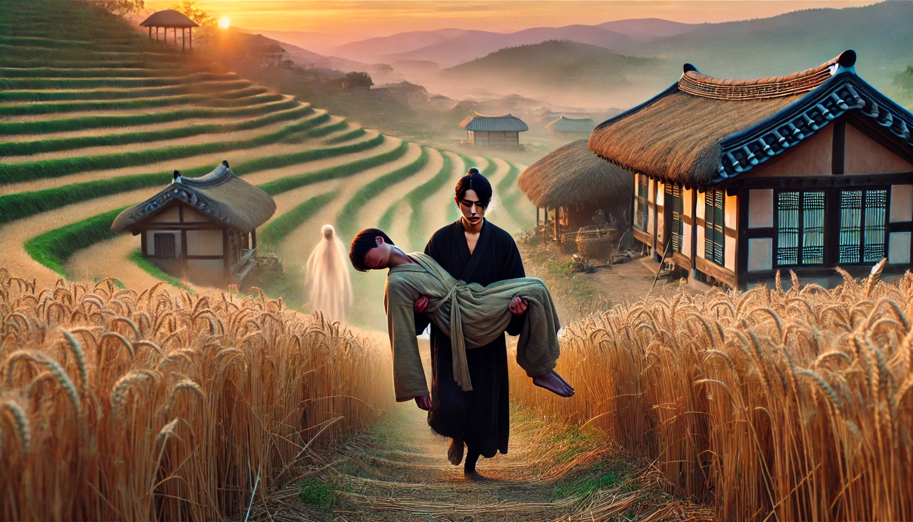 "잘 듣거라. 내일 점심때가 되면 대문 밖에 밥상을 아주 거하게 차려놓아라. 콩밥에 소고기뭇국, 그리고 짚신 세 켤레와 노잣돈을 넉넉히 올려두어야 한다. 저승차사들이 들이닥치면 내가 어떻게든 손을 써볼 테니, 너는 절대 방 밖으로 나오지 말고 숨소리도 내지 말고 쥐 죽은 듯이 있어야 한다. 알겠느냐?"