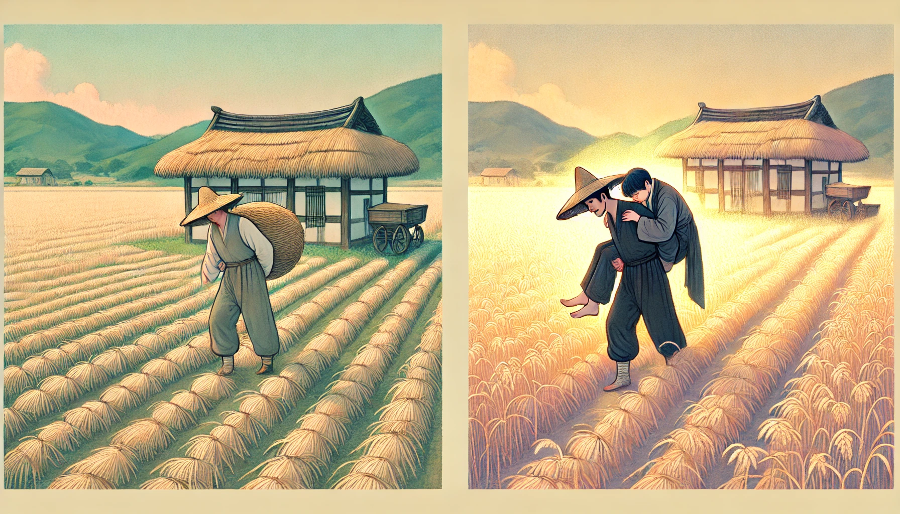 어느 해 늦가을이었습니다. 그해따라 가뭄이 어찌나 심했는지, 밭에 심어놓은 무랑 배추가 다 말라비틀어져서 시래기보다 못한 꼴이었습니다. 해는 뉘엿뉘엿 넘어가고, 찬바람은 쌩쌩 불어대는데, 덕칠이는 밭고랑에 털썩 주저앉아 한숨을 푹푹 쉽니다.