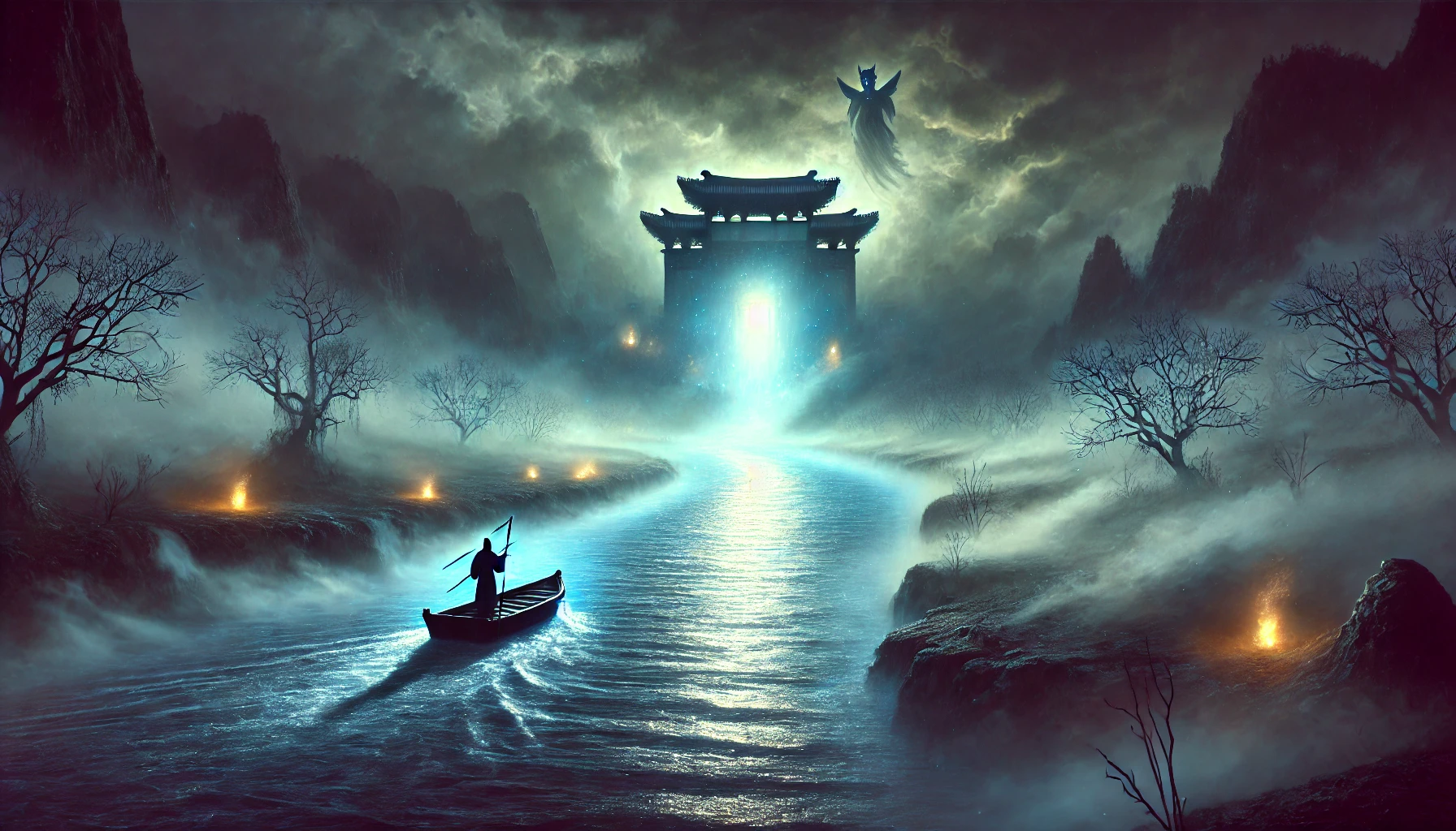 푸른빛이 감도는 강물 위로 안개가 낮게 깔려 있었다. 바람은 없었지만, 강물은 서서히 흐르며 저승으로 향하고 있었다.