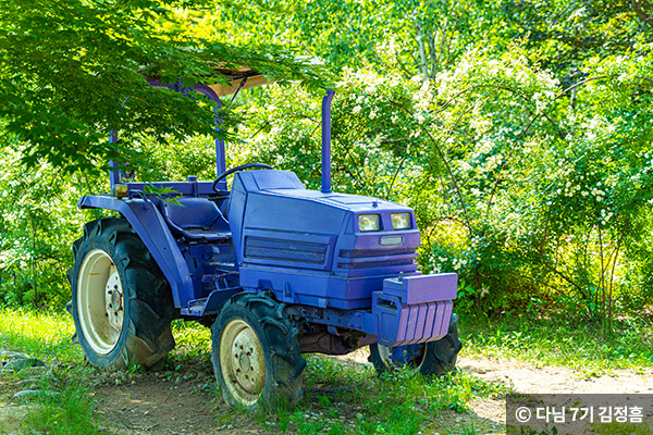 트랙터까지 모두 보라색으로 물들어 있어