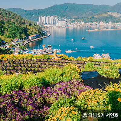 지세포진성 꽃동산은 라벤더, 금계국과 시원한 바다를 한 번에 만날 수 있는 명소입니다.