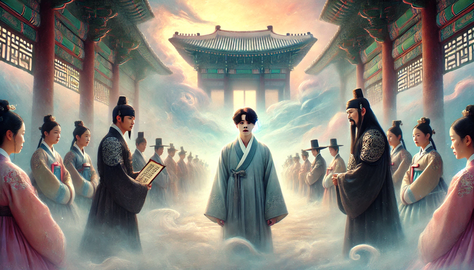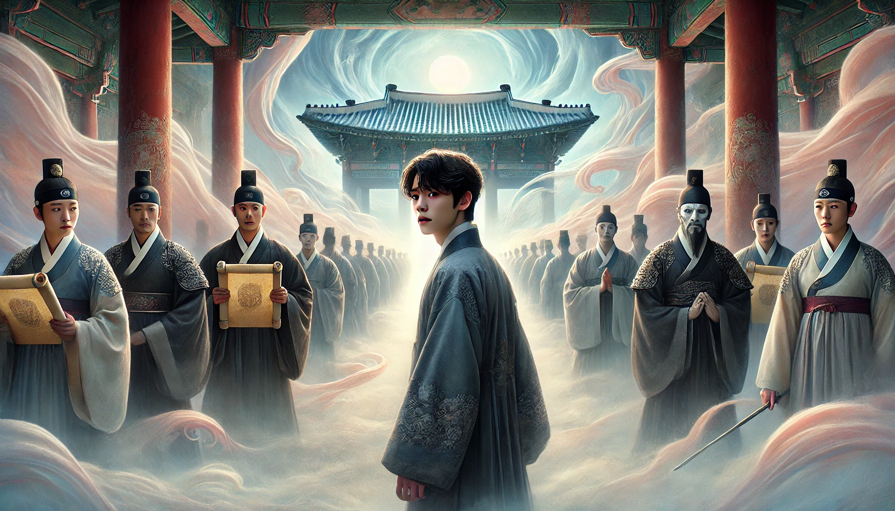 칠복이는 그제야 진심으로 후회했습니다. 따뜻한 밥 한 끼, 어머니의 잔소리마저 사무치게 그리웠습니다. 하지만 배는 무심하게도 강을 건너, 저승의 관문인 '명부전(冥府殿)' 앞에 닿았습니다. 그곳에는 거대한 문이 입을 벌리고 있었고, 그 안에서는 천둥 같은 호통 소리가 들려오고 있었습니다. 이제 곧 자신의 운명이 판가름 날 염라대왕의 법정이 기다리고 있었던 것입니다.