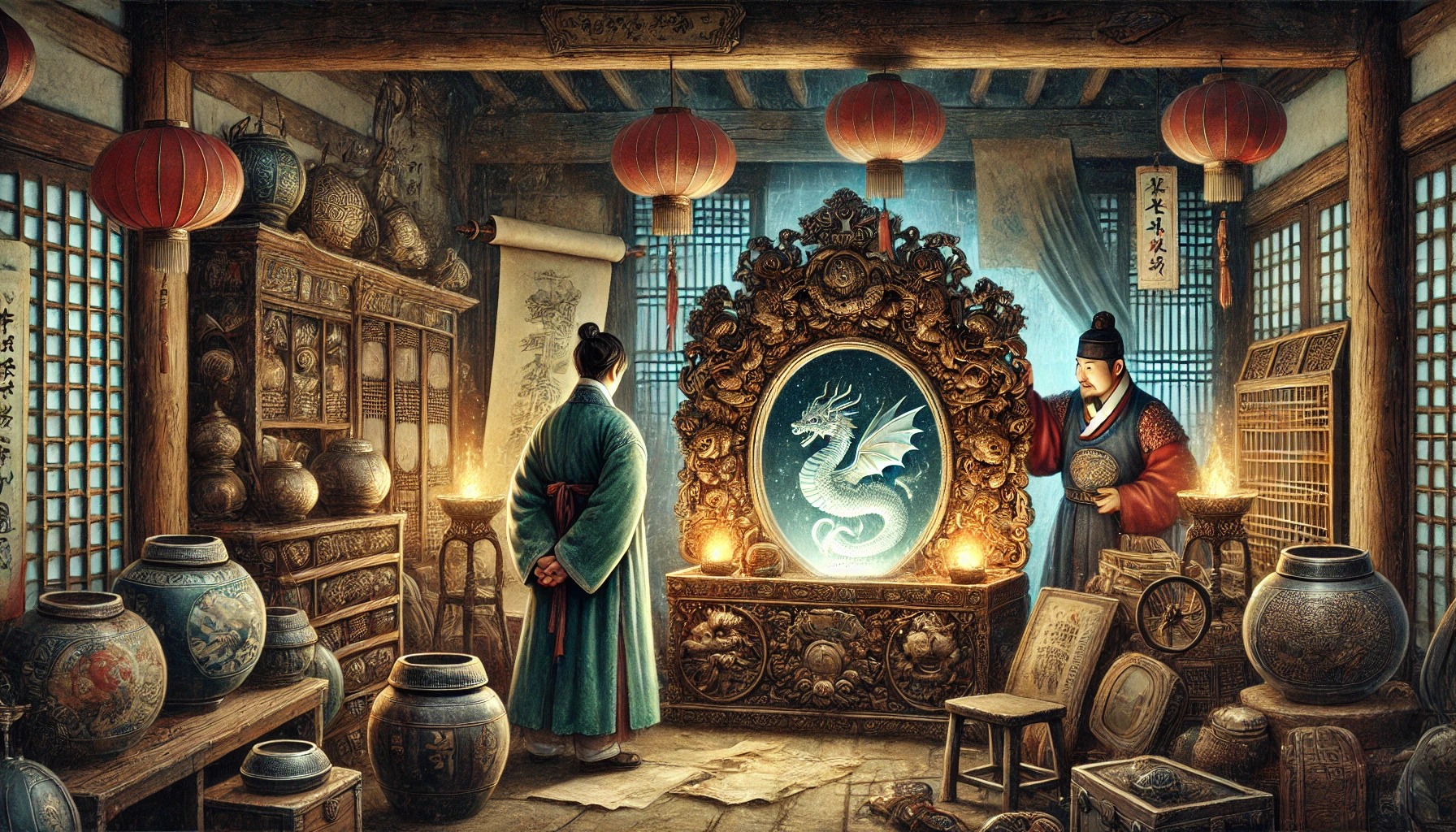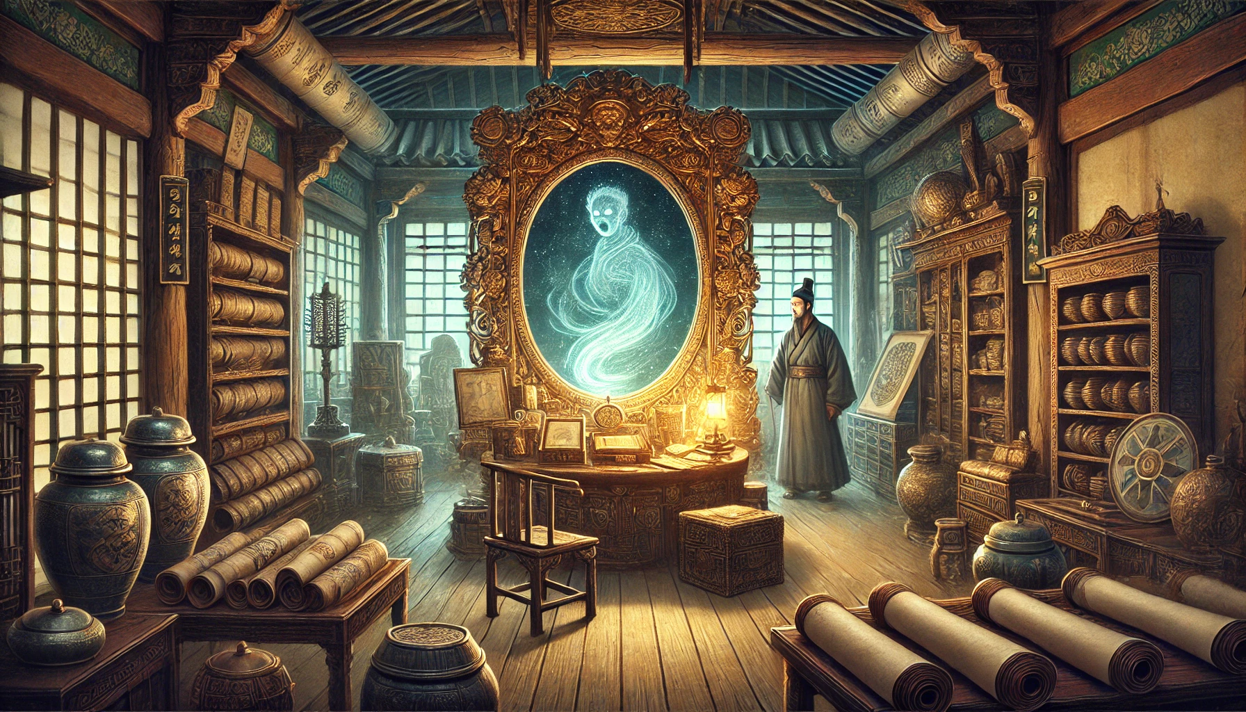 "별것 아닌 물건이라고?" 도사가 서책을 펼쳤습니다. "이 거울은 보는 이의 운명을 바꿀 수 있는 위험한 물건이오. 당장 내게 넘기시오."