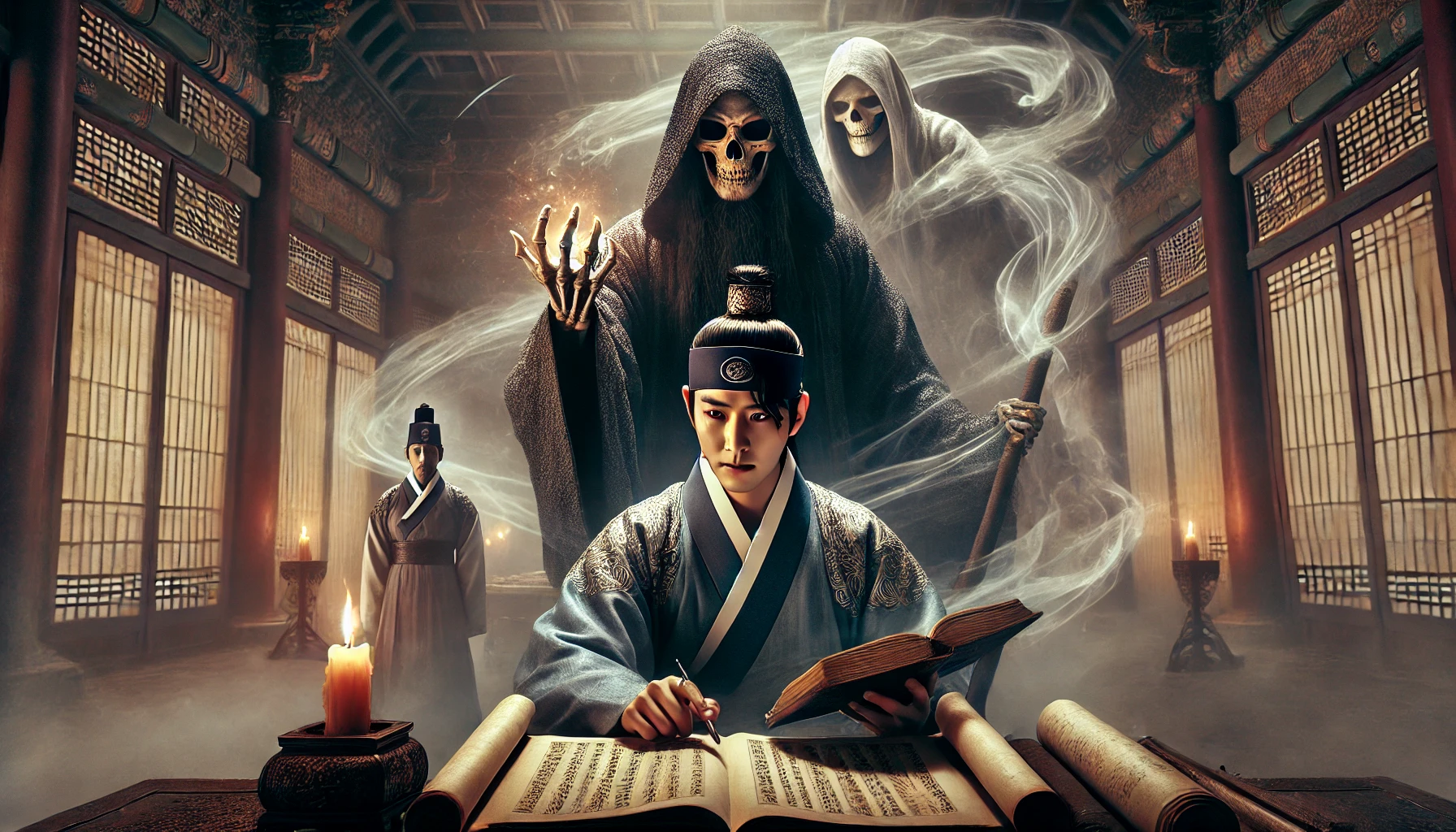 촛불이 흔들리며 두 사람의 그림자를 벽에 길게 드리웠다. 허준은 저승사자의 제안을 기다리며 묵묵히 서 있었다. 세자의 숨소리는 점점 약해지고 있었다.