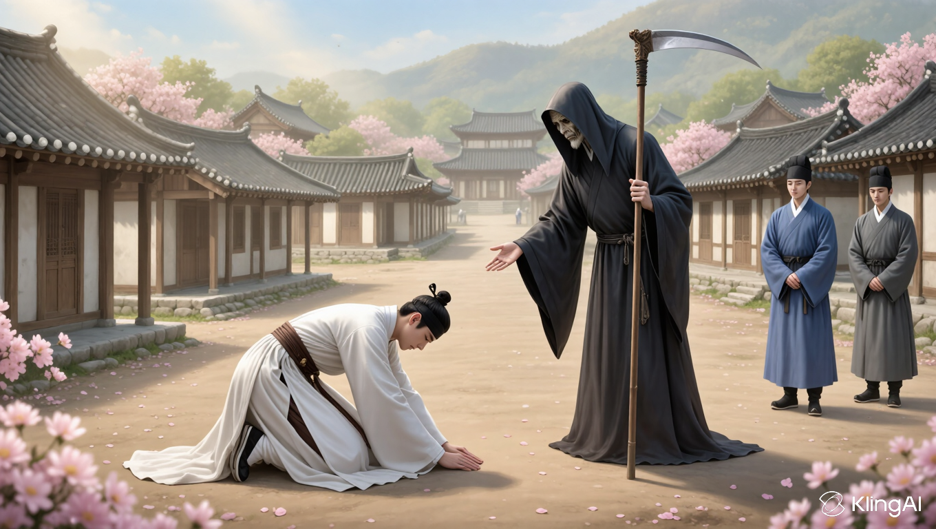 "저승사자님, 제발 부탁드립니다. 저에게는 칠십이 넘은 늙은 어머니가 계십니다. 제가 죽으면 어머니께서 얼마나 슬퍼하시겠습니까. 부디 저에게 시간을 조금만 더 주십시오!"