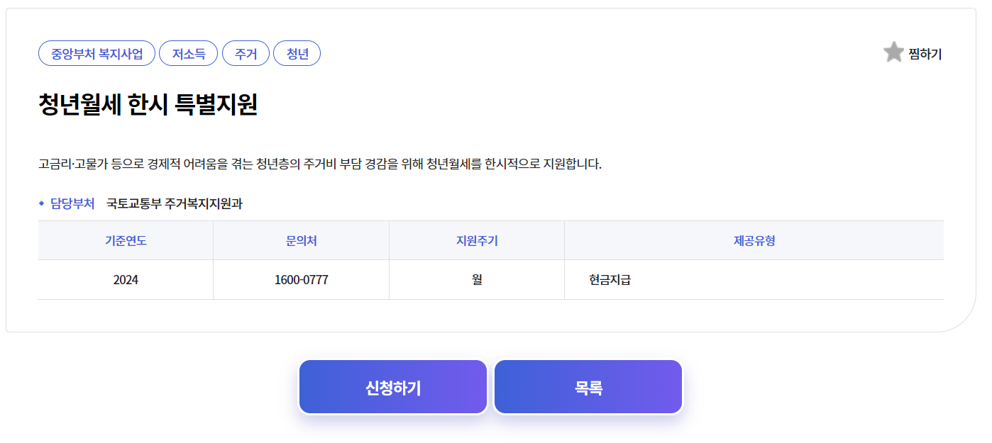 2. 청년월세 한시 특별지원 신청