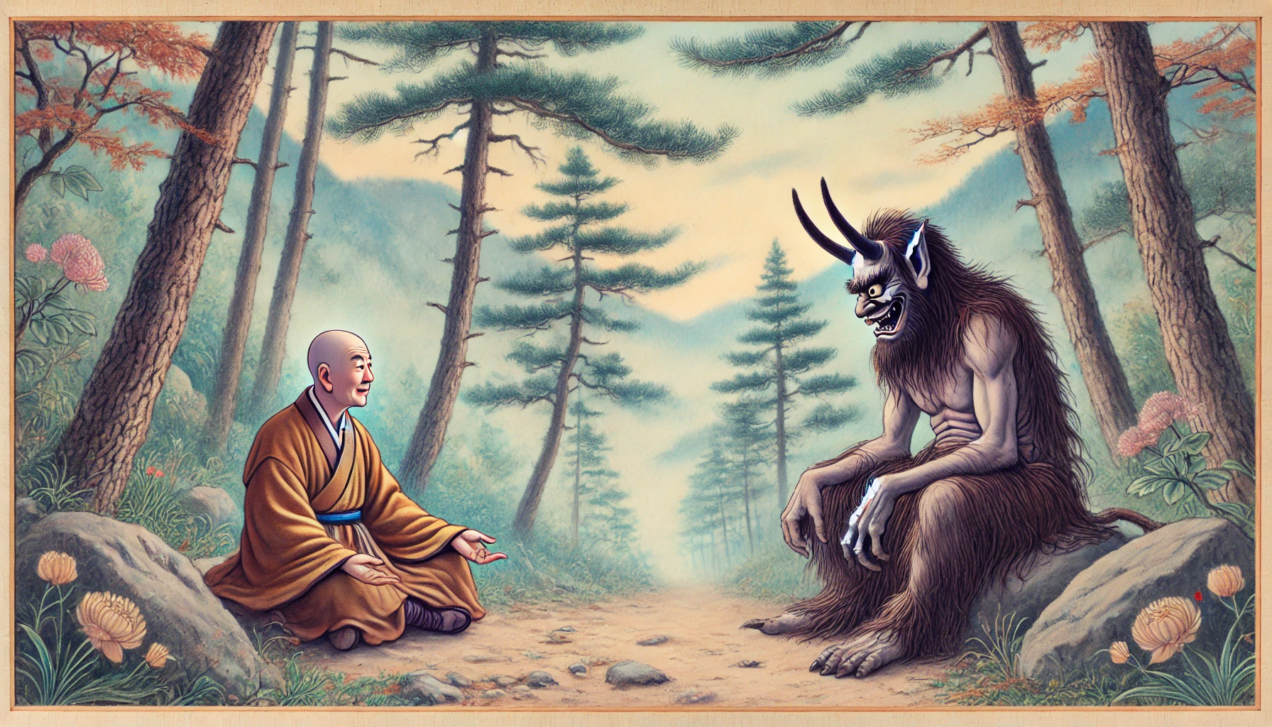 혜안 대사가 자비로운 목소리로 말했습니다. "그대의 가족들이 정말로 원하는 것이 무엇일까요? 그대가 이토록 고통받으며 복수에 매달리는 것일까요, 아니면 그대가 평안을 찾고 행복해지는 것일까요?" 스님의 질문에 도깨비는 할 말을 잃었습니다.