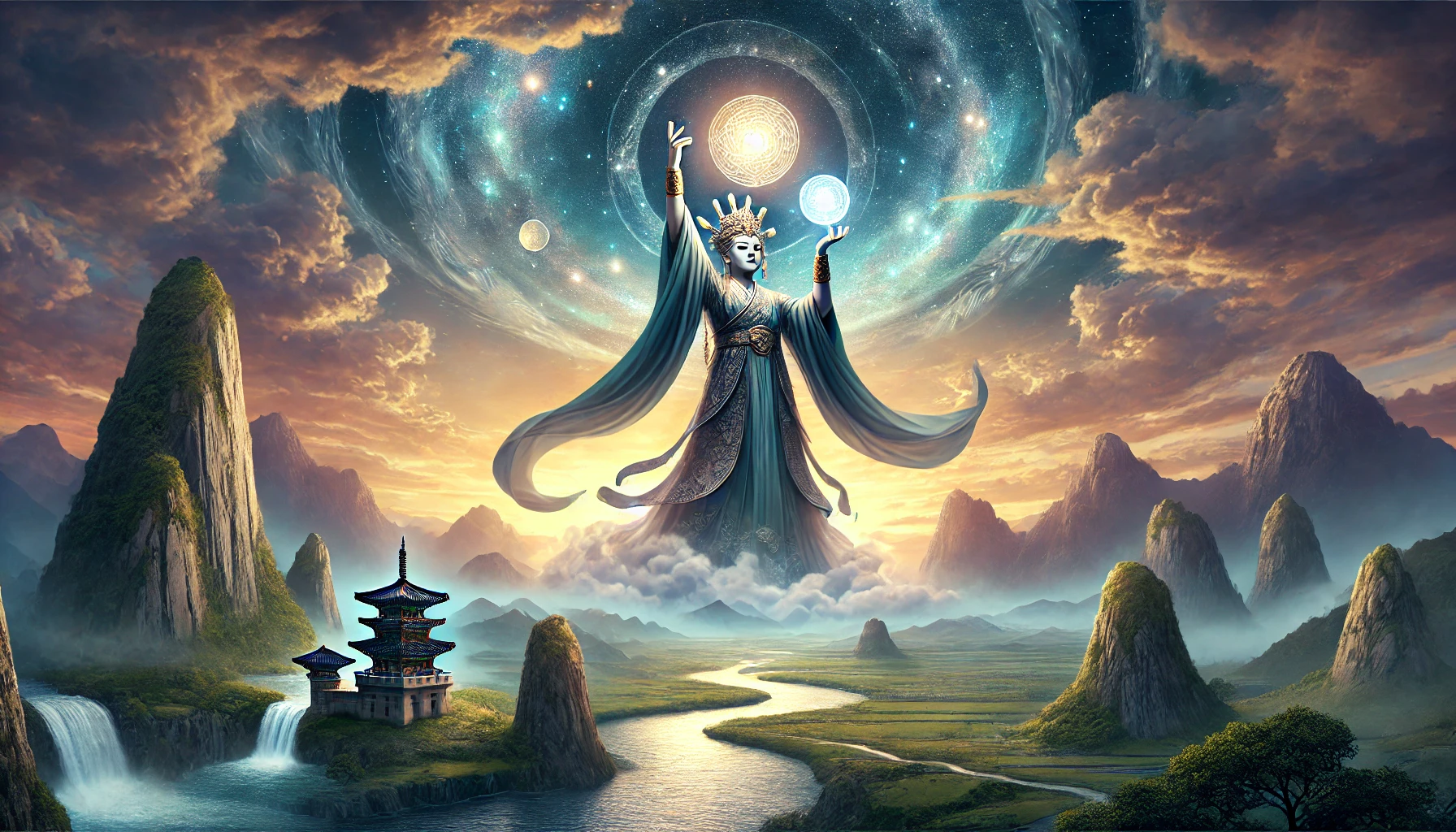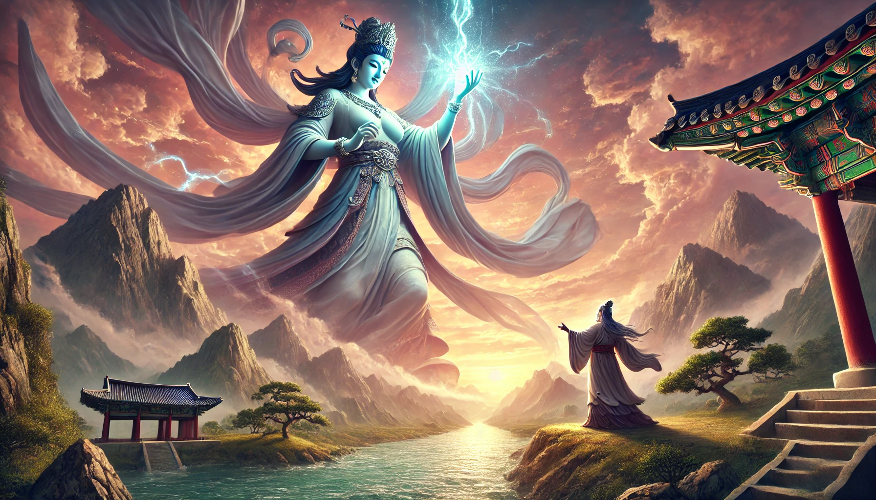 그녀의 목소리는 바람을 타고 온 세상에 퍼졌다. 사람들은 그 순간 하늘과 대지의 경계가 분명히 드러나는 것을 보았고, 그 경계 위로 거대한 힘이 움직이는 것을 느꼈다. 그 힘은 바로 마고할미의 의지였다.
