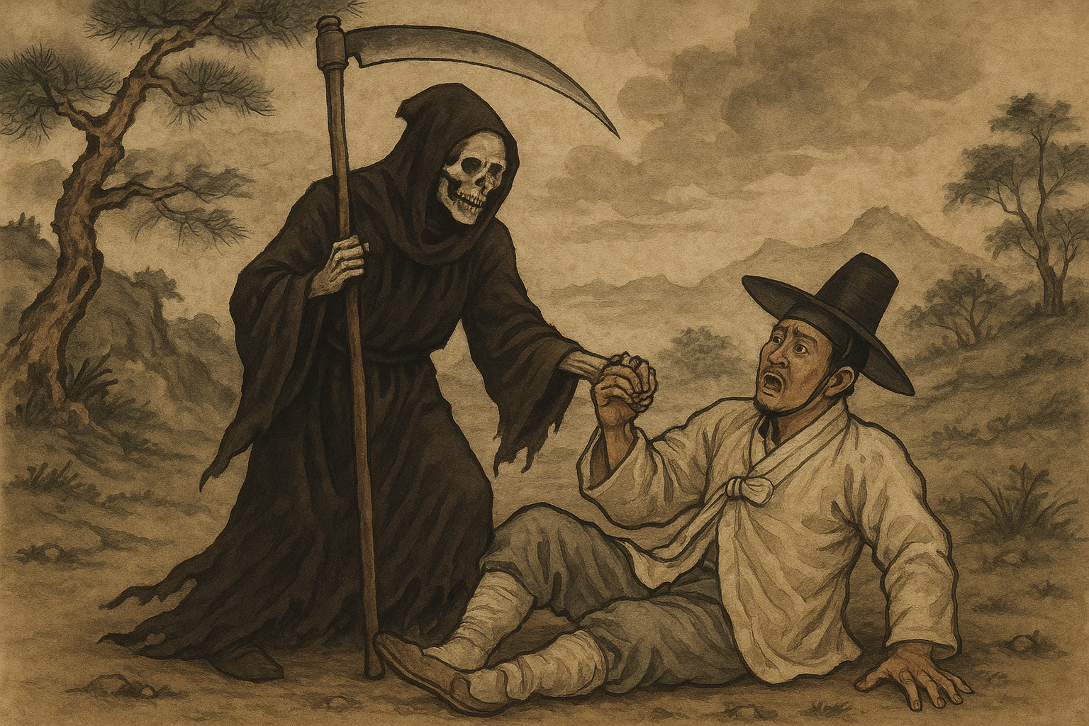 "이 아이는 장차 많은 사람들을 구할 의원이 될 것입니다." 저승사자가 조용히 말했습니다. "하지만 지금 죽으면 그 모든 것이 물거품이 되겠지요."