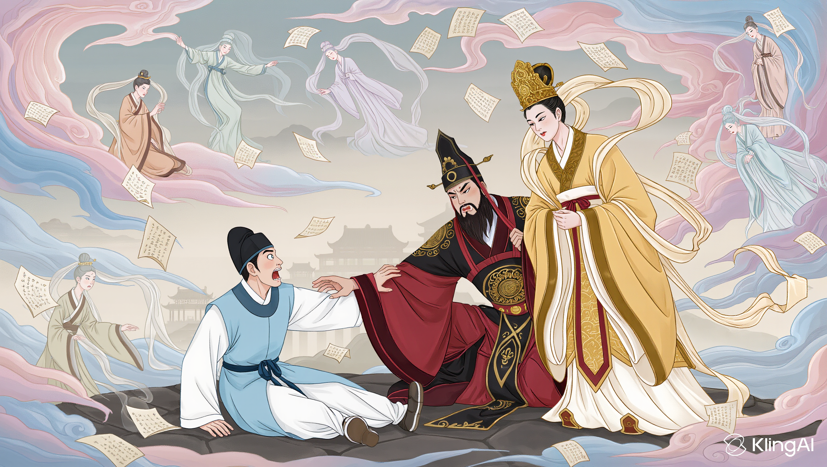 "들어가라!" 저승사자가 등을 떠밀어, 박 서방은 거대한 염라전 안으로 비틀거리며 들어섰다. 그는 눈을 질끈 감았다가 떴다. 상상 속의 염라전은 서슬 퍼런 작두와 불타는 가마솥, 그리고 죄인의 비명으로 가득 찬 곳이었다. 그러나 그의 눈앞에 펼쳐진 광경은, 상상과는 전혀 달랐다. 물론, 전각은 어마어마하게 넓고 높았으며, 시커먼 기둥에는 용이 감겨 있었고, 사방에는 기괴한 형상의 귀졸들이 늘어서 있었다. 하지만 분위기가 이상했다. 준엄하고 서슬 퍼런 심판의 현장이 아니라, 마치 장터의 난장판과도 같았다. 저승의 판관들과 서기들이 이리저리 뛰어다니며 고함을 지르고 있었고, 장부로 보이는 두루마리들이 바닥에 어지럽게 흩어져 있었다. "아니, 이게 맞지 않잖아!" "이쪽 장부랑 저쪽 장부를 대조해 봤어?" 몇몇 영혼들은 심판은커녕, 구석에 쭈그리고 앉아 어쩔 줄 몰라 하고 있었다. 박 서방은 어안이 벙벙했다. '이 이게 저승의 심판?' 그리고 그는 전각 가장 깊숙한 곳, 높은 옥좌를 바라보았다. 그곳에는 당연히 염라대왕이 근엄하게 앉아있어야 했다. 하지만 옥좌는 비어있었다. 대신, 옥좌 앞 넓은 공터에서, 두 거대한 존재가 서로를 노려보며 삿대질을 하고 있었다. 한 명은 우리가 익히 아는, 검은 면류관에 붉은 용포를 입은, 무시무시한 수염을 기른 염라대왕이었다. 그런데 그 염라대왕이 안절부절못하며 쩔쩔매고 있었다. 그리고 그의 앞에는, 온몸에서 눈부신 황금빛 광채가 뿜어져 나오는, 위엄 있는 백발의 노인이 서 있었다. 그는 하얀 용포를 입고 있었는데, 그 기세가 염라대왕을 압도하고도 남았다. 박 서방은 저도 모르게 무릎을 꿇었다. 저분은 이야기 속에서나 듣던 "옥 옥황상제?" 그렇다. 저승의 왕인 염라대왕의 처소에, 하늘의 주인인 옥황상제가 직접 행차한 것이었다. 그리고 분위기는, 살벌하기 그지없었다. 옥황상제는 잔뜩 격앙된 목소리로 염라대왕을 꾸짖고 있었다. "염라! 그대는 어찌하여 명부의 관리를 이따위로 하는 게요! 지금 이게 이게 말이 된다고 생각하시오!" 옥황상제의 호통에 거대한 염라전이 쩌렁쩌렁 울렸다.
