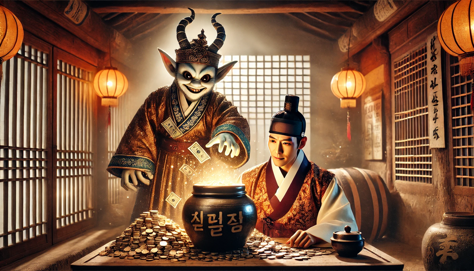 조선 팔도에서 소문난 구두쇠 김 대감. 그의 텅 빈 곳간에 밤마다 쌀가마니가 저절로 쌓이기 시작했다! 이것은 복일까, 아니면 화일까? 재물의 출처를 좇던 김 대감 앞에 나타난 것은 장난기 가득한 도깨비. 인간의 끝없는 탐욕을 시험대에 올린, 기묘하고도 유쾌한 내기가 지금 시작됩니다.