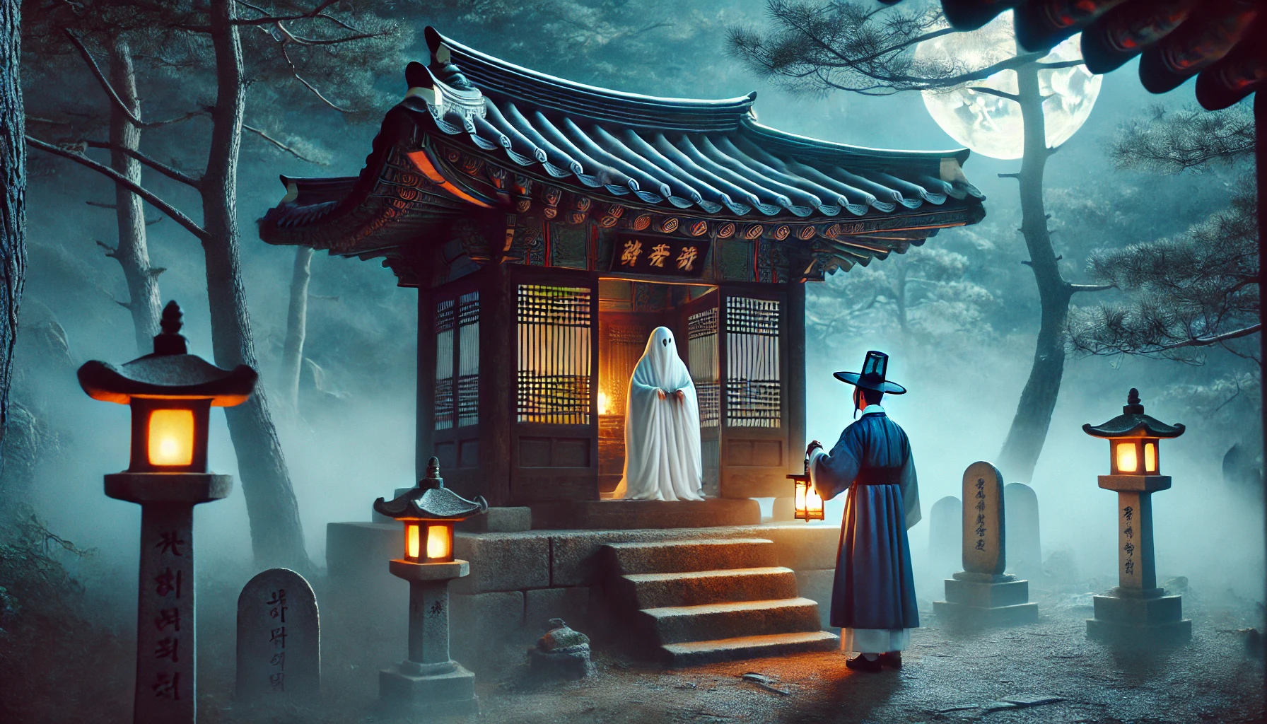 뜬눈으로 밤을 새운 박 선비는 새벽녘이 되어서야 잠시 책상에 엎드려 눈을 붙였습니다. 그리고 그는 아주 깊고도 기이한 꿈을 꾸게 되었습니다. 꿈속에서 그는 자신이 살고 있는 낡은 기와집의 대청마루에 서 있었습니다. 그런데 이상하게도 집은 낡고 허름한 지금의 모습이 아니었습니다. 기둥은 웅장했고, 서까래에는 아름다운 단청이 선명했으며, 마당에는 이름 모를 고운 꽃들이 만발해 있었습니다. 마치 수백 년의 시간을 거슬러 올라간 듯, 집은 과거의 영화로웠던 모습 그대로였습니다. 박 선비가 넋을 잃고 주변을 둘러보던 그때, 마루 저편에서 한 사내가 천천히 그를 향해 걸어오고 있었습니다. 그는 갓을 단정히 쓰고, 푸른색 도포를 입은 젊은 선비의 모습이었습니다. 용모는 무척이나 준수하였으나, 그 얼굴에는 깊은 수심이 드리워져 있었고, 두 눈에는 금방이라도 흘러내릴 듯한 슬픔이 가득 고여 있었습니다. 무엇보다 이상한 것은, 그의 몸이었습니다. 달빛에 비친 그의 모습은 마치 옅은 안개처럼 투명하여, 그의 등 뒤로 마당의 풍경이 희미하게 비쳐 보였습니다. 사람이 아닌, 영혼이었습니다.